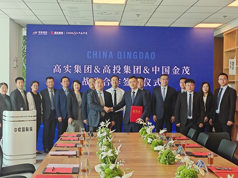 高實(shí)集團(tuán)、高投集團(tuán)、中國(guó)金茂戰(zhàn)略合作簽約儀式順利舉行5 月9日上午,高實(shí)集團(tuán)、高投集團(tuán)、中國(guó)金茂戰(zhàn)略合作簽約儀式在中歐國(guó)際城項(xiàng)目售樓處隆重舉行, 青島高新區(qū)工委委員、管委副主任王震出席簽約儀式,